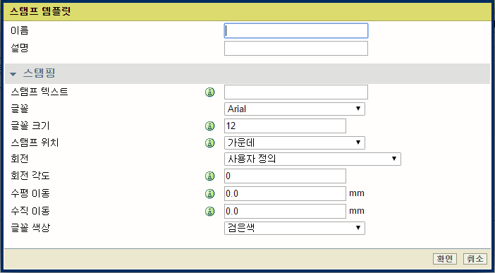 WebTools Express의 [복사 작업 기본값] 사용자 정의 프리셋 섹션에서 스탬프 기능을 활성화할 수 있습니다. [스탬핑] 탭에서 자신만의 미리 정의된 스탬프를 만들 수 있습니다.