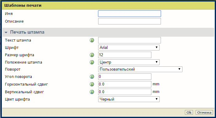 В разделе пользовательских предустановок [Умолчания задания копирования] в WebTools Express можно активировать функцию штампа. На вкладке [Штампование] можно создавать собственный предустановленный штамп.